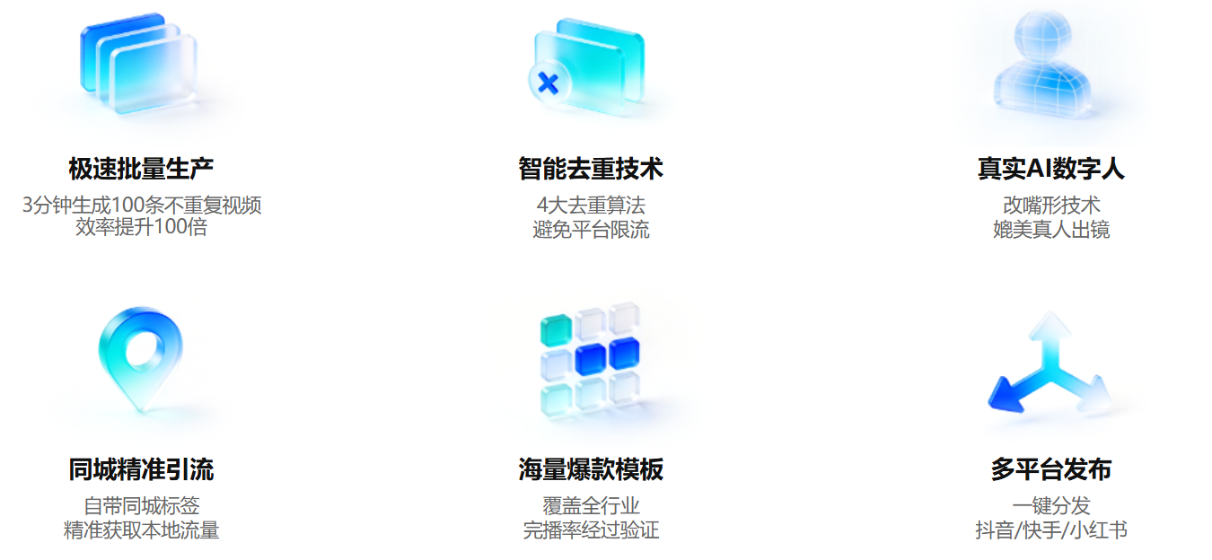 ❌ 制作专业视频门槛高、耗时久 ❌ 内容产出效率低,难以批量创作 ❌ 投放成本高而转化效果不理想 -